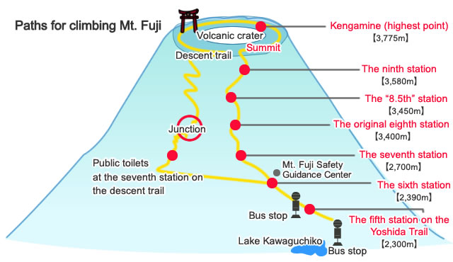 It was about 1:00 when we started the ascent up the mountain. We passed by tons of people who had just run in the Fuji Mountain Race, the thought of which blows my mind. The sky was overcast and it was pretty foggy, so while it was pretty hot, it wasn’t as bad as it would’ve been in the blistering sun. The downside to this is that our view down the mountain was mostly just gray. Within the first half hour, I already started having doubts. Other than tag, walking, and biking, the most physical exercise I’d done recently (read: past 10 years) was running a 5k two weeks previously. I wasn’t the only one, either. The more people we passed, the more we wondered if we should pace ourselves better. The first half of the climb is mostly just walking up hills that gradually get steeper, there’s no actual climbing (on the trail we took at least). After an uncertain amount of time, we reached the 6th station. One out of three done, right? We knew this wasn’t quite true (see map above), but it was still our first major checkpoint. We took a break, drank some water, then continued up.